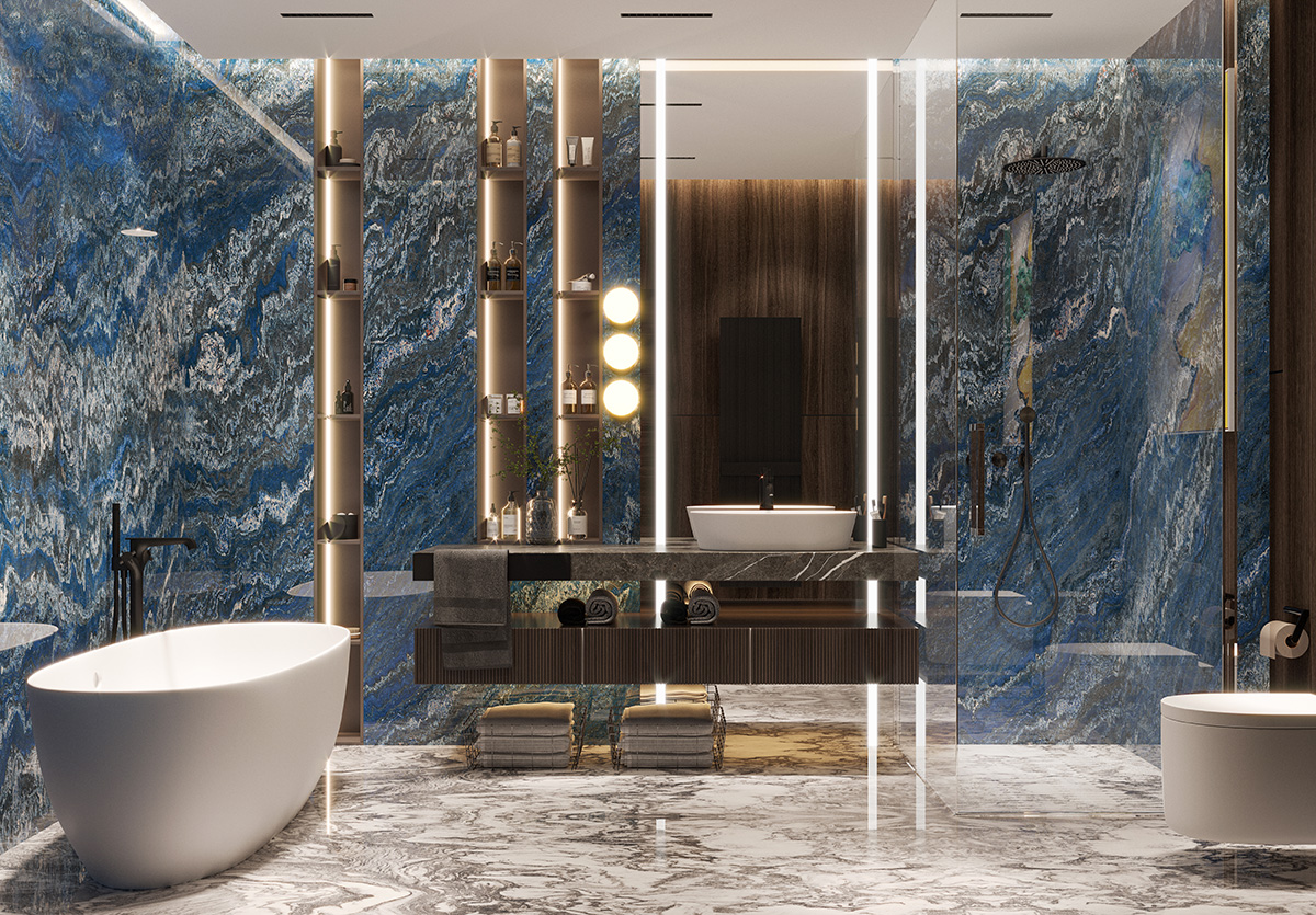 เลือกกระเบื้องที่มีสีสันและลวดลายที่เข้ากันกับการตกแต่งห้องน้ำของคุณเพื่อสร้างความสวยงามควบคู่กับความปลอดภัย