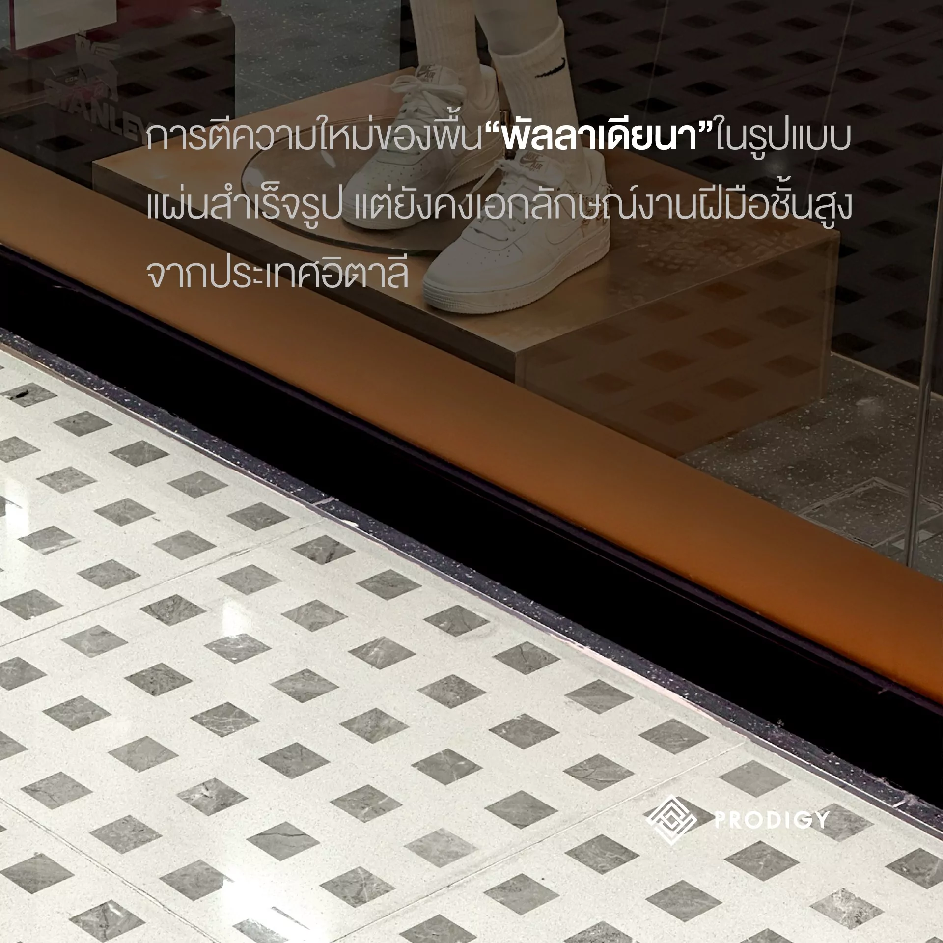 ในยุคนี้ ความสวยต้องมาพร้อมความรับผิดชอบครับ Prodigy Design นำเสนอ Terrazzo รุ่นใหม่ที่ผสมผสานวัสดุรีไซเคิล แต่ยังคงความแข็งแรงระดับสูงสุด ซึ่งเหมาะมากกับทั้งงาน Interior และ Landscape การที่โครงการใหญ่อย่าง Central Pinklao มั่นใจเลือกใช้ เป็นเครื่องยืนยันได้อย่างดีว่าวัสดุของเรา “เอาอยู่” ทั้งเรื่องดีไซน์และฟังก์ชัน