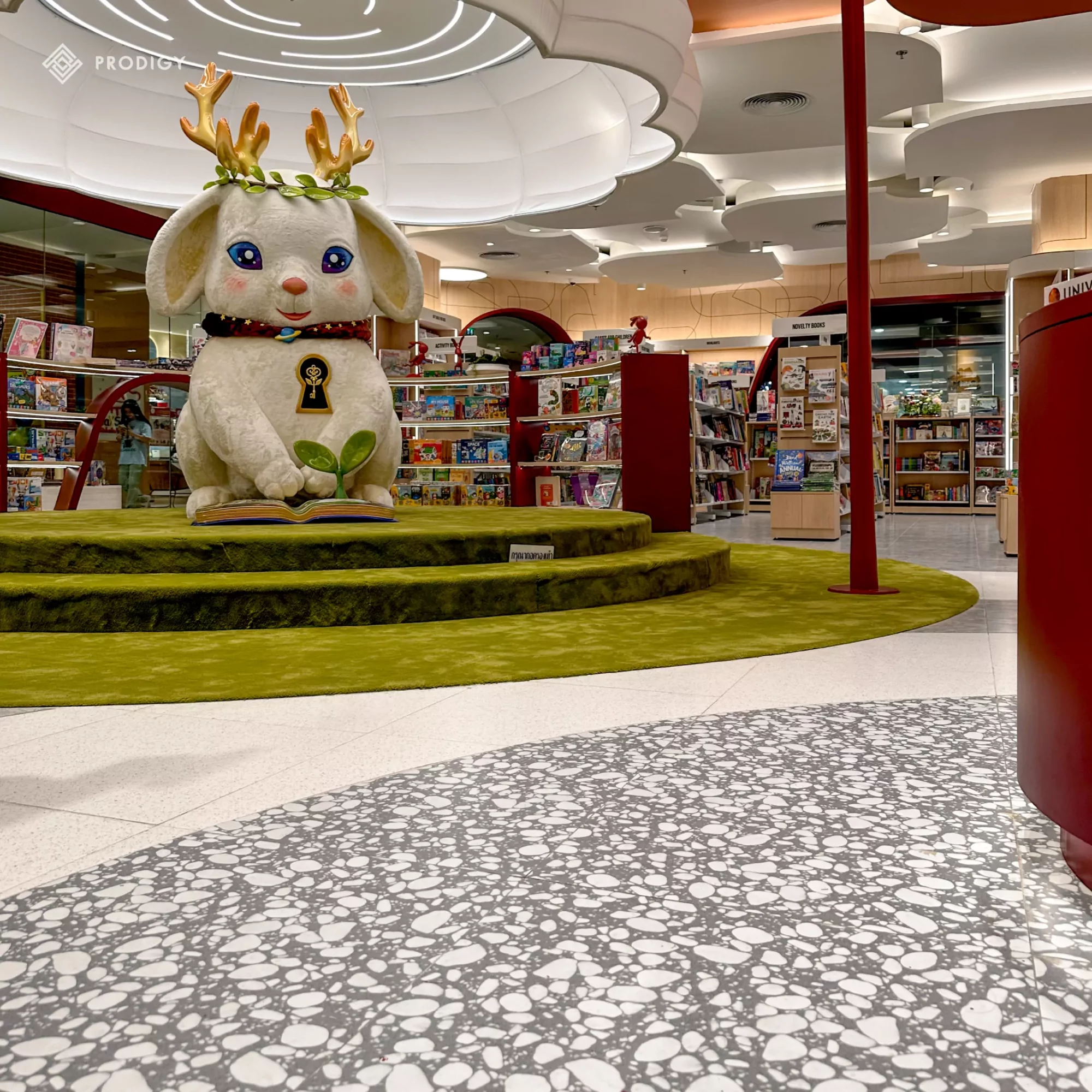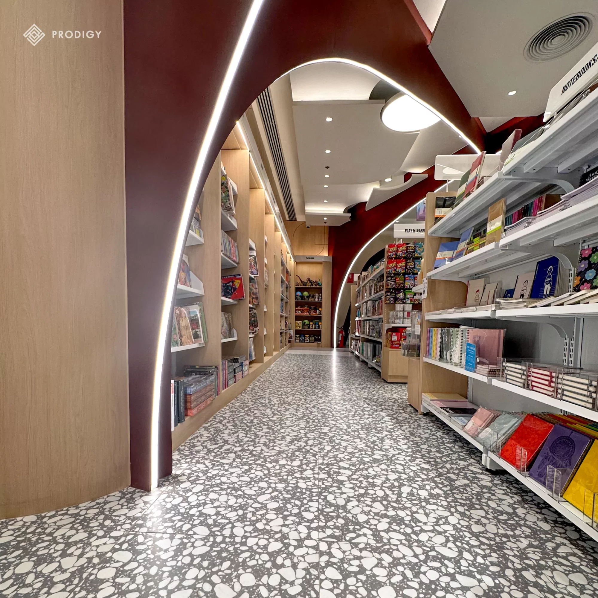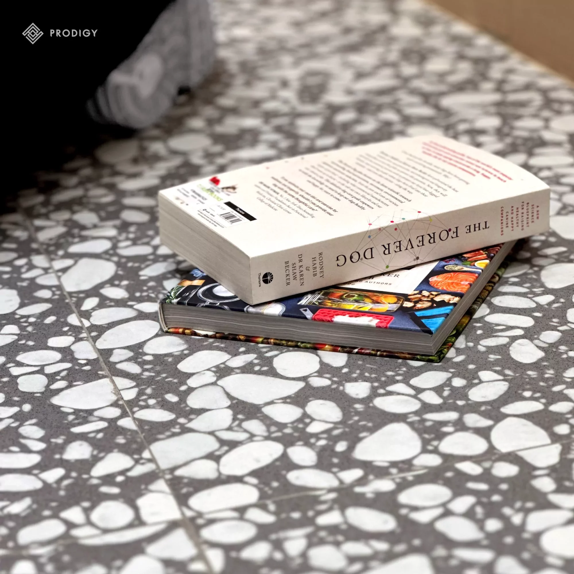 เสน่ห์แห่งโลกวรรณกรรม ถ่ายทอดผ่านงานดีไซน์ที่เต็มไปด้วยความพิถีพิถัน ผสานความเรียบหรูเข้ากับความมีชีวิตชีวา ด้วยการเลือกใช้พื้นจาก Porcelain Tile ที่มีผิวเนียนด้าน ลวดลาย Terrazzo โทนเทา-ขาว ทุกย่างก้าวที่เดินให้ความรู้สึกมั่นคงแต่ไม่แข็งกระด้าง บรรยากาศที่โอบรับด้วยความอบอุ่นแบบร่วมสมัย สร้างความรู้สึกเหมือนอยู่ในโลกแห่งจินตนาการที่ปลอดภัยและน่าอยู่ ลวดลายหินที่กระจายตัวอย่างสมดุล สะท้อนความร่วมสมัย พร้อมโทนสีที่ให้ความรู้สึกอบอุ่น ชวนให้หยิบหนังสือเล่มโปรดขึ้นมาเปิดอ่านด้วยความเพลิดเพลิน