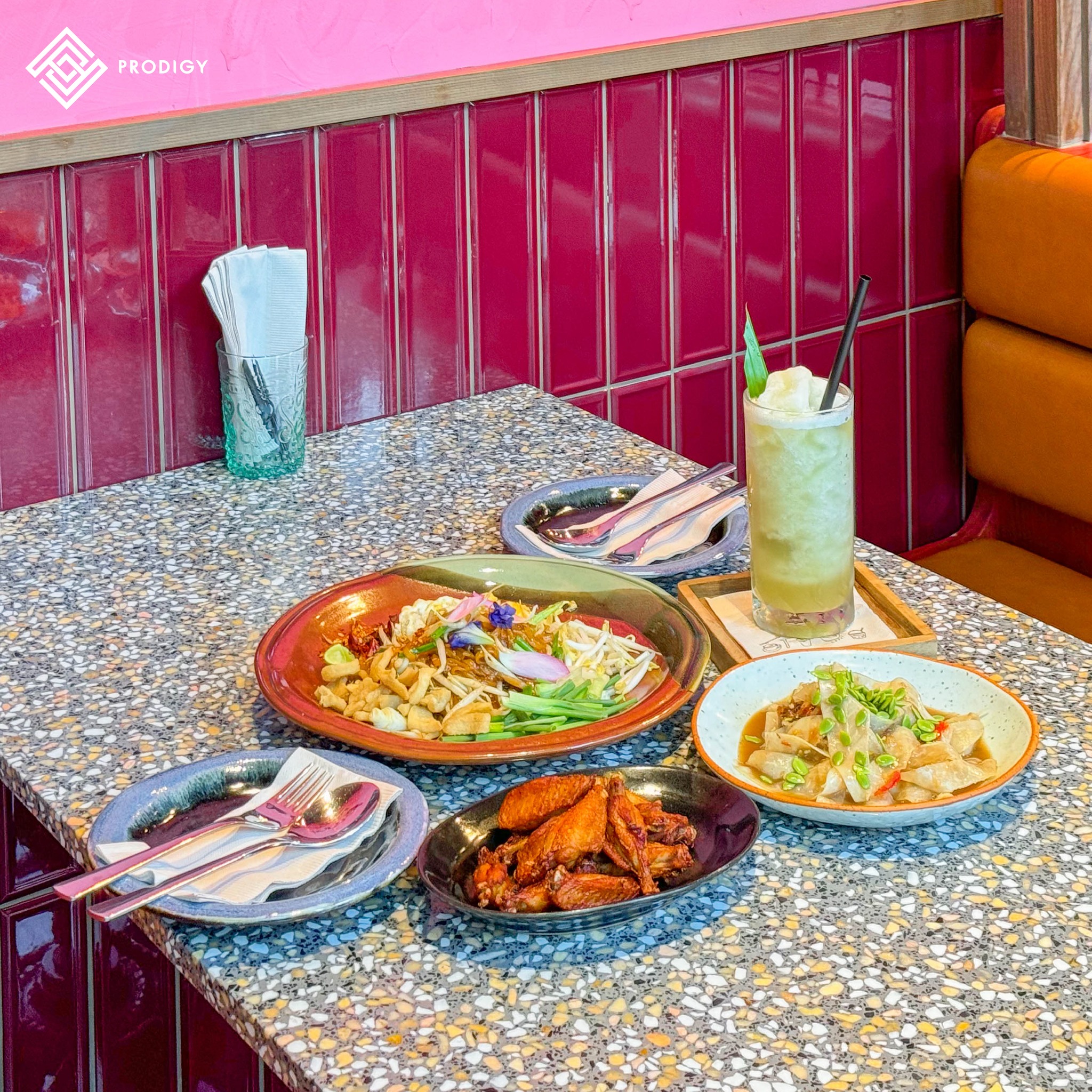 “เบิร์นบุษบา” ร้านอาหารอีสานที่โดนใจคนเมือง ชูจุดเด่นเมนูประเภทยำ ตำ ทอด เมนูของทางร้านมีให้เลือกหลากหลาย ซึ่งลูกค้าสามารถบอกกับทางร้านได้ว่าจะใส่ปลาร้าหรือไม่ใส่ปลาร้าทั้งยังสามารถเลือกระดับความเผ็ดได้อีกด้วย ทางร้านตกแต่งด้วยสีน้ำตาลจากลายไม้ และสีแดงที่ไม่ฉูดฉาดเกินไปดูสบายตาแต่เรียบหรู ทางร้านใช้หินเทียมเทอร์ราซโซเป็นส่วนหนึ่งของงานตกแต่ง โดยเลือกใช้หินเทียมเทอร์ราซโซของโพรดิจี้ ลาย Veneto verona (PD-T050) ตัวหินสีเทามีเกล็ดหินสีขาว น้ำตาล ดำกระจายตัวอยู่บนแผ่นหิน นำมาทำเป็นท็อปโต๊ะสำหรับรับประทานอาหารของลูกค้า