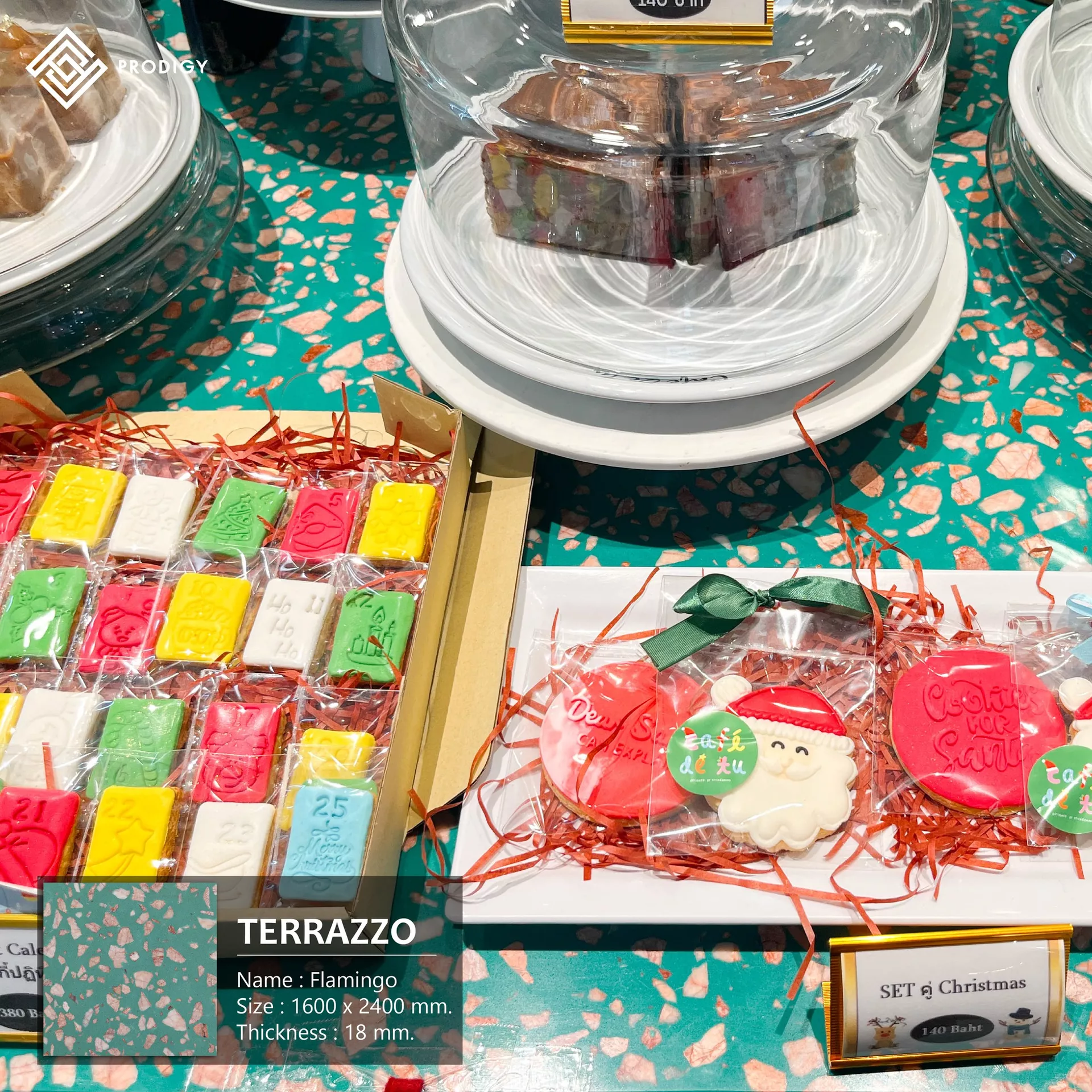 เทศกาลสุดพิเศษส่งท้ายปีที่เต็มไปด้วยสีสันและความสนุกสนานแบบนี้ ให้หินเทียมเทอร์ราซโซเป็นส่วนหนึ่งของงานออกแบบสุดประทับใจ #โพรดิจี้ ดีไซน์ พาชมผลงานการใช้งานหินเทียมเทอร์ราซโซลาย Flamingo รหัส PD-T047 ในงานออกแบบท็อปเคาน์เตอร์สำหรับจัดวางสินค้าภายในร้าน Cafe’ De Tu ณ ศูนย์การค้าสามย่านมิตรทาวน์ ที่ออกแบบมาได้เข้ากับบรรยากาศของร้านและปรับแต่งได้เข้ากับได้ดีกับเทศกาลคริสต์มาสได้อย่างลงตัว