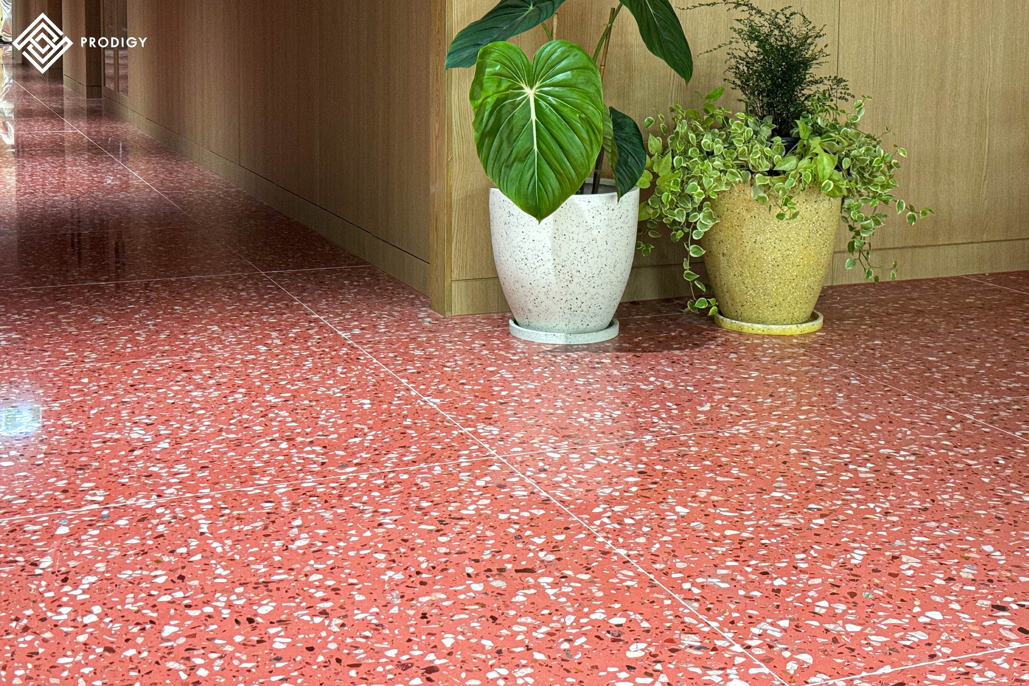 ด้วยความสามารถพิเศษของโพรดิจี้ จึงตอบโจทย์ Insight ความต้องการของลูกค้าด้วยหิน Terrzzo ลายใหม่ Ruby (PD-T024) และ Ash Green (PD-T030) สั่งผลิตเพื่อโครงการพิเศษของลูกค้าโดยเฉพาะ ด้วยพื้นหินสีชมพูและสีเขียวธรรมชาติ มีเกล็ดหินขนาดเล็กและใหญ่ กระจายตัวอย่างสม่ำเสมอทั่วแผ่นหิน ช่วยให้งานออกแบบมีความเป็นเอกลักษณ์ไม่เหมือนใคร และโดดเด่นน่าค้นหา