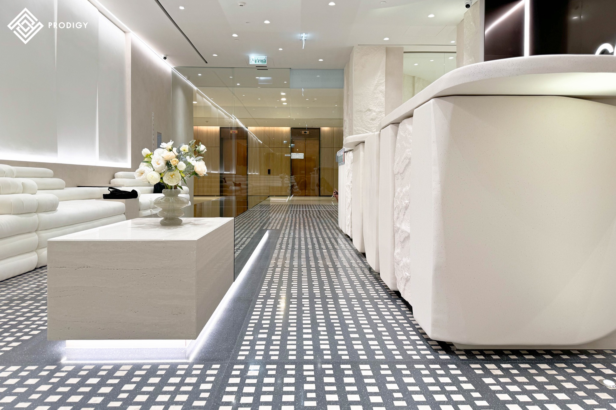 โพรดิจี้ภูมิใจนำเสนอ Project Reference ภายใต้โครงการ “Project Contact” ในการนำเสนอวัสดุเพื่องานออกแบบและตกแต่งพื้นที่ตรงตามความต้องการของลูกค้าด้วยหินเทียมเทอร์ราซโซสั่งผลิตพิเศษเพื่อโครงการนี้โดยเฉพาะในชื่อ Terrazzo in Terrazzo สำหรับการออกแบบพื้นภายในคลีนิกทันตกรรมคอสเดนท์