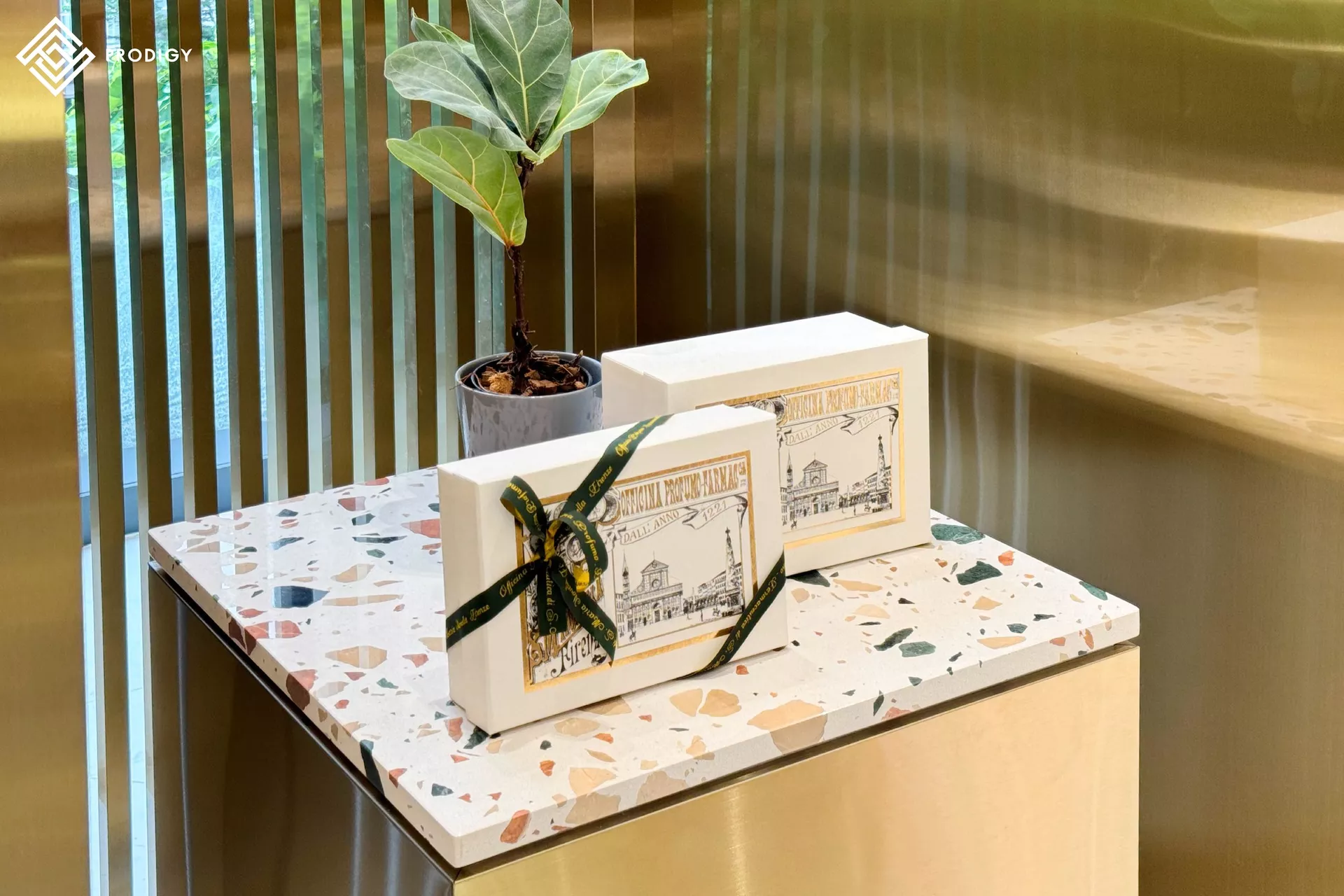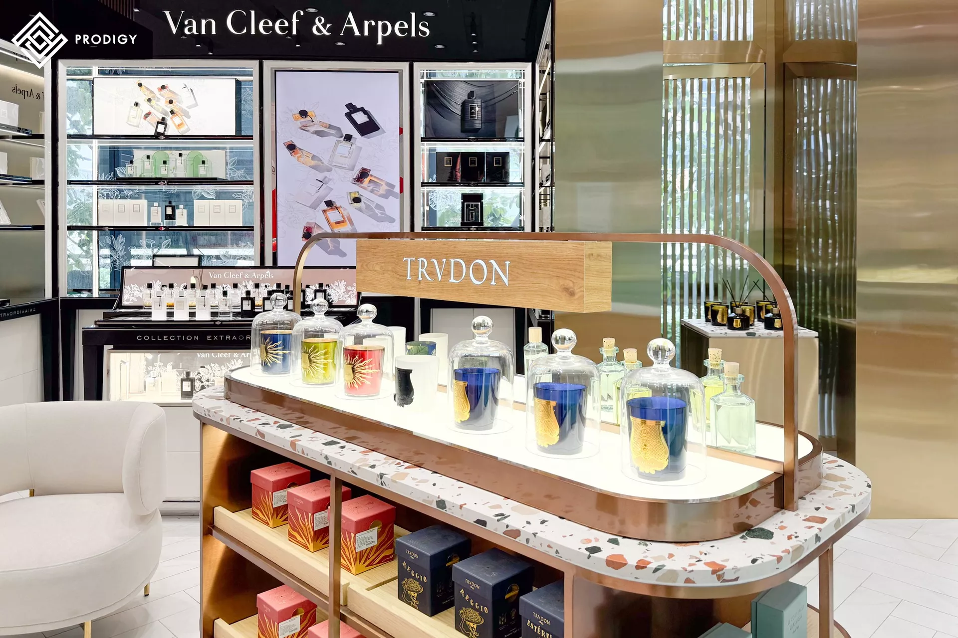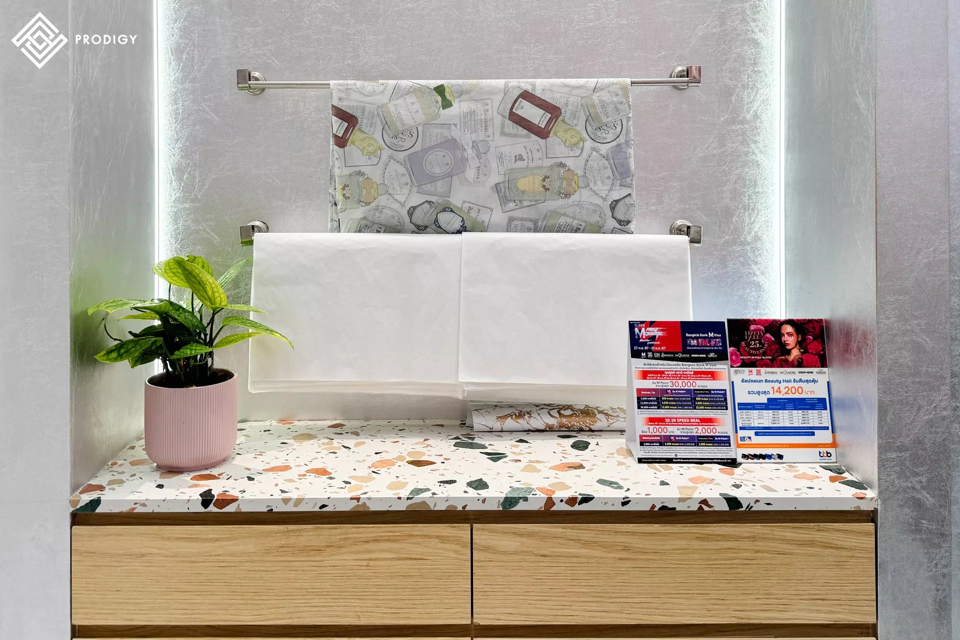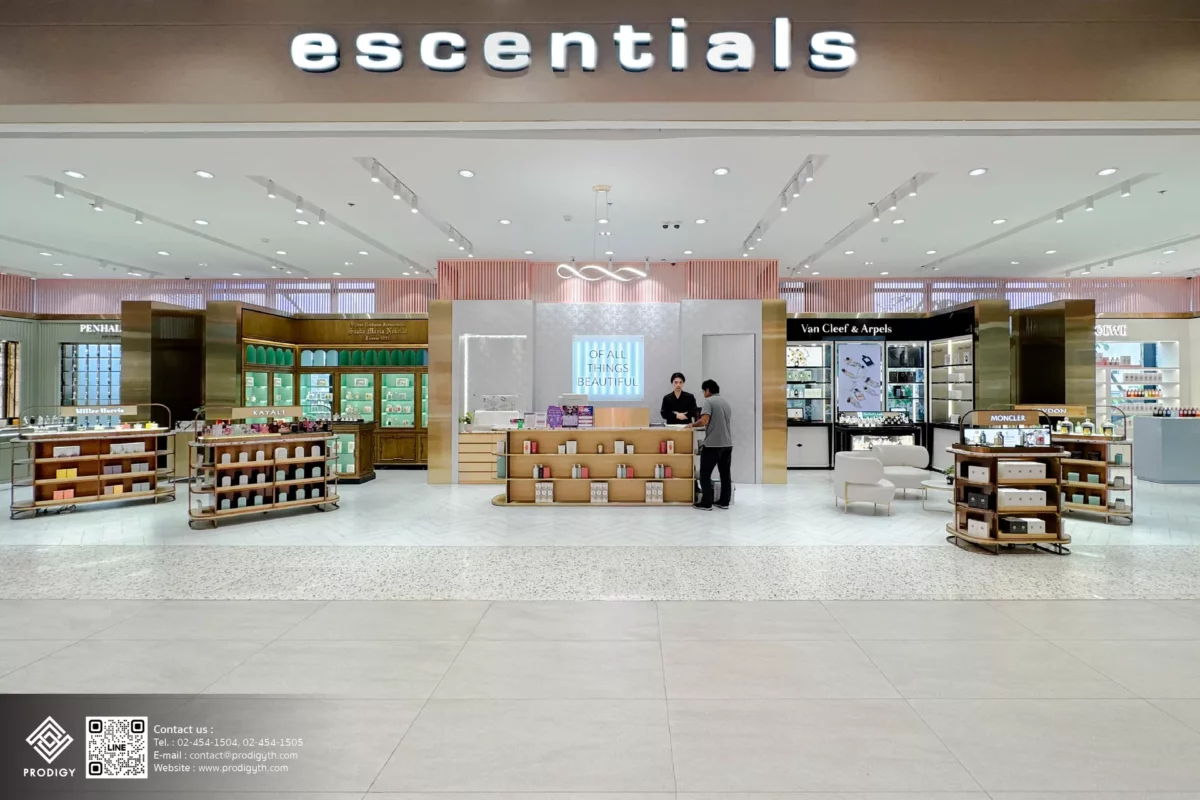 โพรดิจี้ ดีไซน์ พาชมผลงานการใช้งานหินเทียมเทอร์ราซโซลาย Ettore Sottsass รหัส PD-T021 กับงานออกแบบท็อปเฟอร์นิเจอร์สำหรับจัดวางสินค้าภายในร้าน Escentials ณ ศูนย์การค้า Emsphere ที่ออกแบบมาได้เข้ากับบรรยากาศและแสดงความสวยงามที่ชูความเป็นเอกลักษณ์ของแบรนด์ได้มากที่สุด
