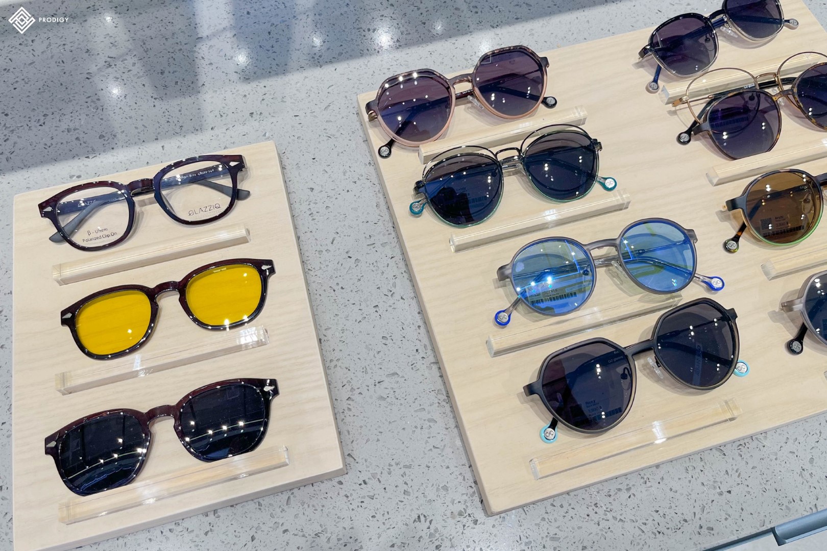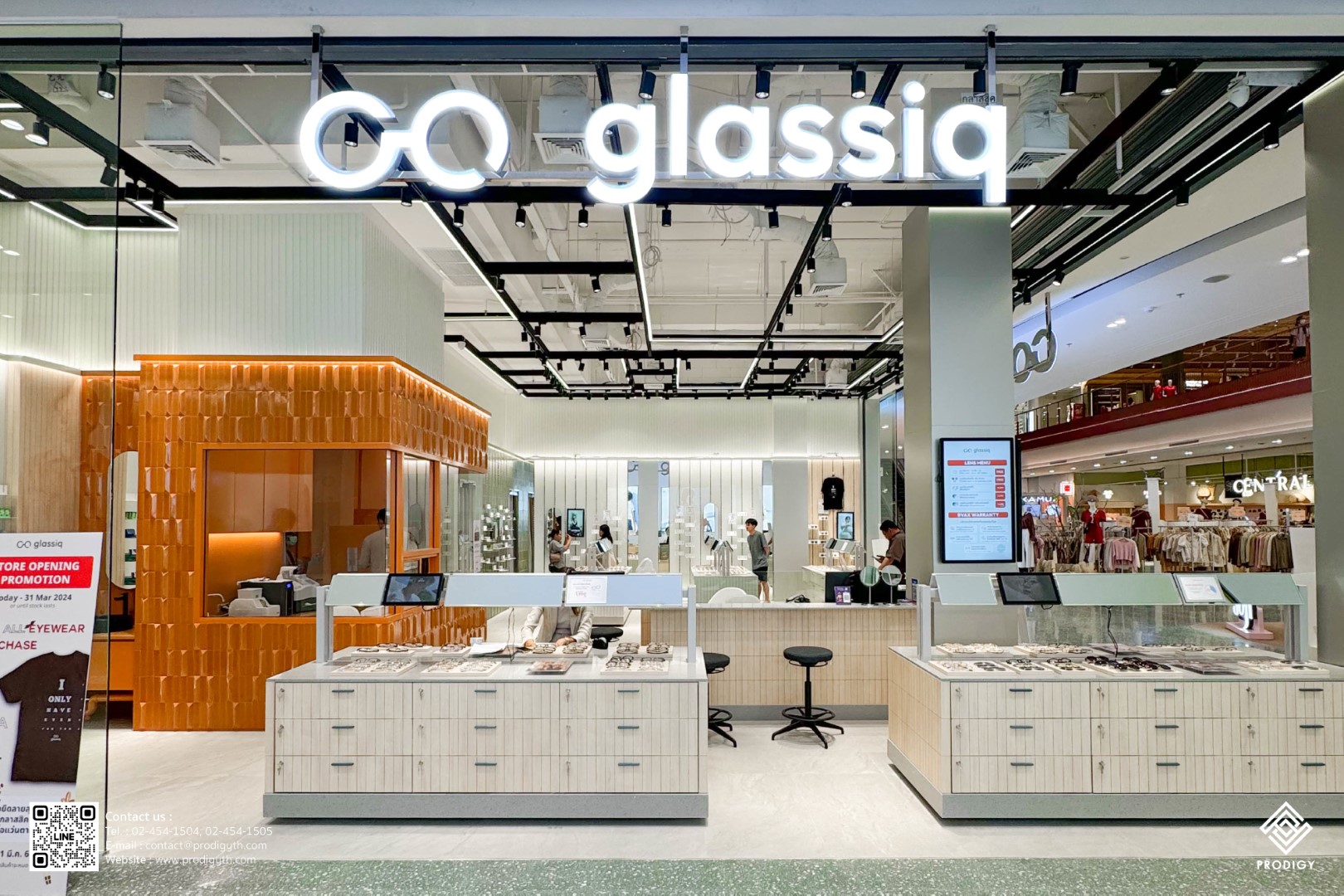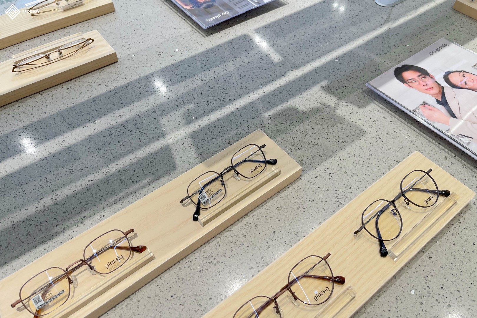 “GLASSIQ” ร้านแว่นที่ต่อยอดธุรกิจของครอบครัวจนกลายเป็นแบรนด์ Glassiq ผู้ให้บริการแว่นตารายใหญ่ที่สุดในเอเชียตะวันออกเฉียงใต้และเอเชียแปซิฟิก ได้ทำการเปิดสาขาใหม่ที่เซ็นทรัล นครสวรรค์ ให้ลูกค้าสามารถเข้าไปใช้บริการได้อย่างสบาย ภายในร้านเน้นการตกแต่งโทนสีสบายตา เน้นความสว่างจากแสงไฟที่ตกกระทบบนเฟอร์นิเจอร์ที่ช่วยให้ตัวสินค้าดูเด่นสะดุดตามากยิ่งขึ้น โดยทางร้านเลือกใช้หินเทียมเทอร์ราซโซลาย Quartz grey (PD-T003) ของโพรดิจี้ ดีไซน์ ติดตั้งในส่วนของงานท็อปเคาน์เตอร์ ช่วยส่งเสริมให้สินค้าภายในร้านมีความโดดเด่นออกมาอย่างสวยงาม