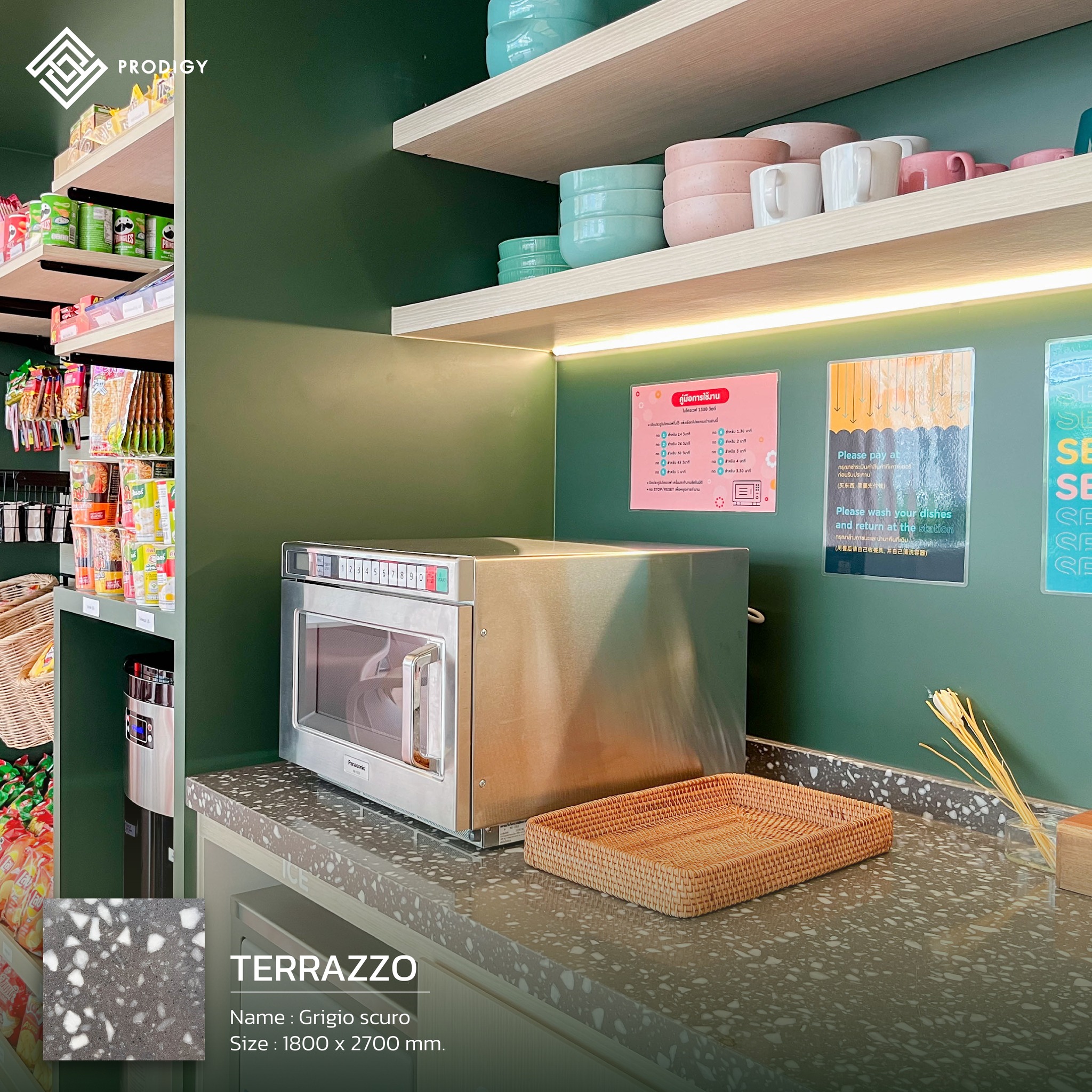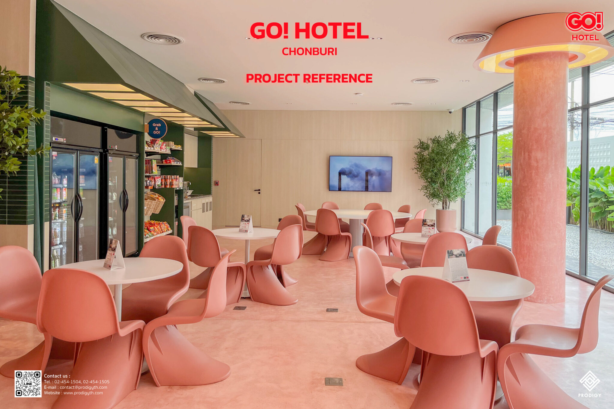 โดยทางโรงแรม Go! Hotel สาขาชลบุรี เลือกในสินค้าจากโพรดิจี้ในส่วนของการติดตั้งภายในโรงแรมหลายส่วนด้วยกัน ได้แก่ ห้องพักทุกห้องเลือกใช้กระเบื้องโมเสคสีเขียวปูบริเวณโซนห้องน้ำ ท็อปครัวส่วนกลางเลือกใช้หินเทียมเทอร์ราซโซลาย Grigio scuro (PD-T010) นอกจากนี้โพรดิจี้ยังได้ให้บริการในส่วนของการนำเข้าเก้าอี้ตกแต่งบริเวณส่วนกลาง และม้านั่งภายนอก