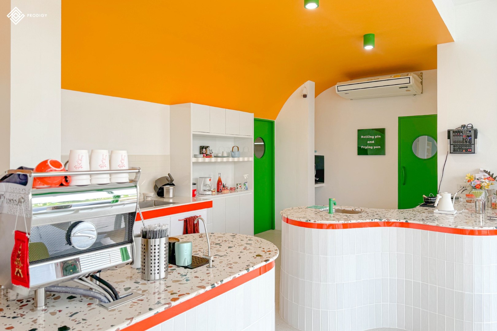 “Joliij Coffee” ร้านคาเฟ่เปิดใหม่พิกัดพระราม2 ซอยท่าข้าม17 ภายในร้านตกแต่งด้วยโทนสีสันสดใส จี๊ดจ๊าด ตัดกันอย่างเห็นได้ชัด ให้ความรู้สึกสนุกสนาน สดใส ตั้งแต่เดินเข้ามาภายในร้าน เครื่องดื่มและเบเกอรี่อร่อยกลมกล่อมลงตัว โดยทางร้านเลือกใช้หินเทียมเทอร์ราซโซลาย Ettore sottsass (PD-T021) ของโพรดิจี้ ดีไซน์ มาใช้ในการทำท็อปเคาน์เตอร์ ด้วยเม็ดหินที่เข้ากับโทนร้านได้ดี ใช้รูปแบบการตัดหินแบบฟรีฟอร์ม โดยช่างฝีมือที่มีความปราณีต มองแล้วรู้สึกให้ความลื่นไหลสบายตา ร้านเปิดทุกวันเวลา 08.00-17.00 น. (หยุดเฉพาะวันพฤหัสบดี) สามารถเข้าไปนั่งทาน นั่งเล่นกันที่ร้าน Joliij Coffee ได้แล้ววันนี้