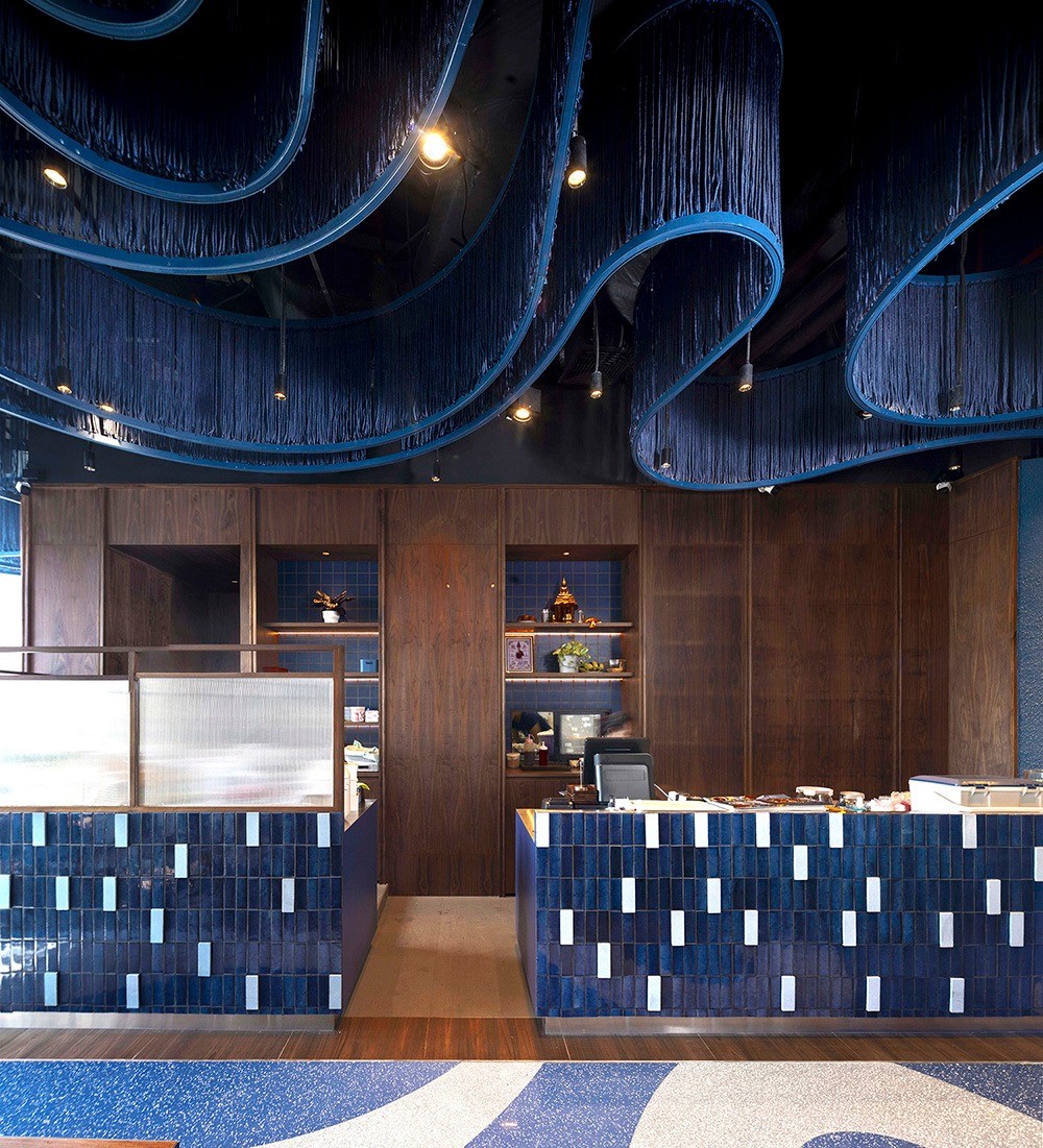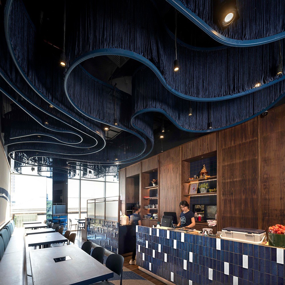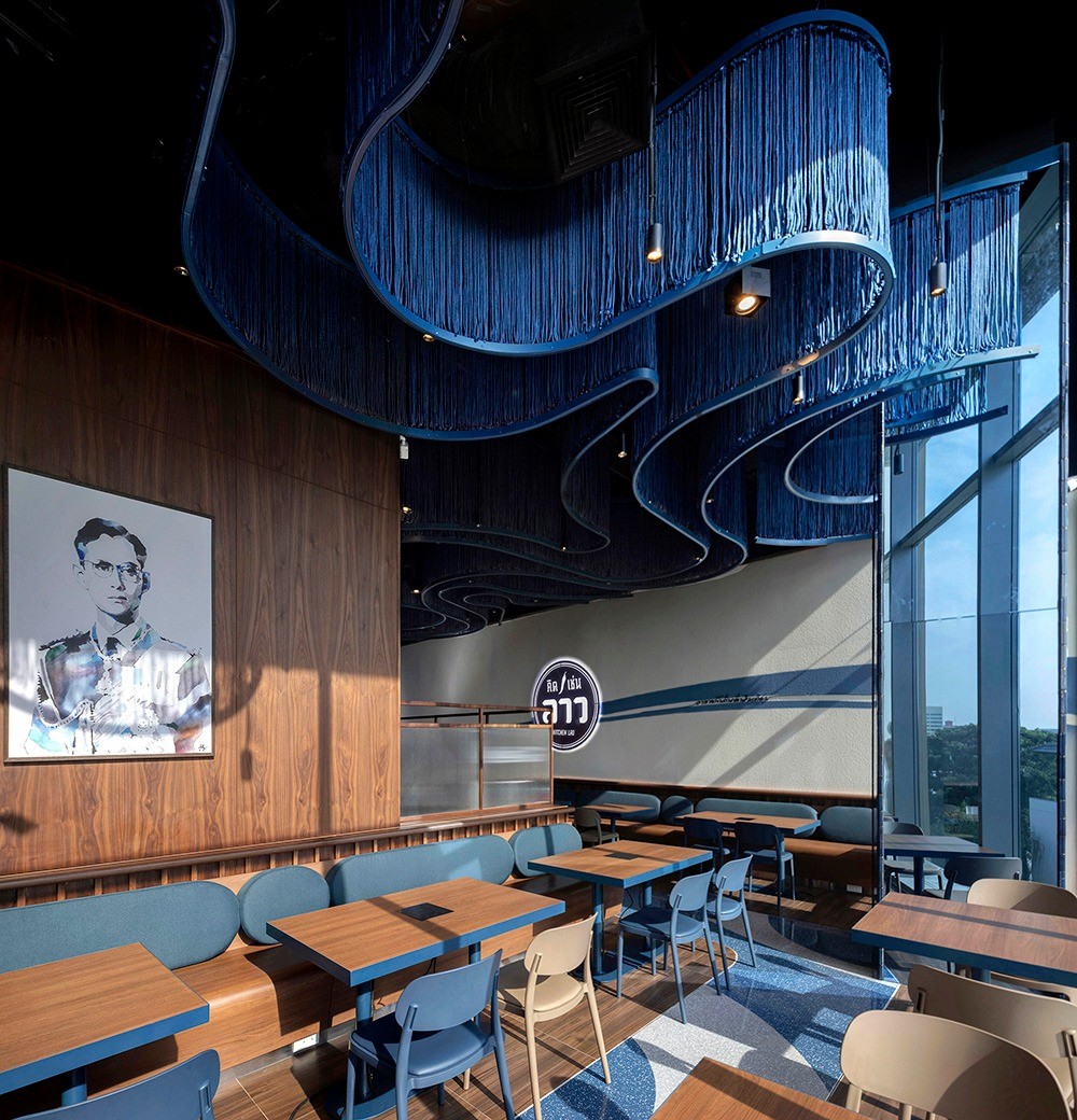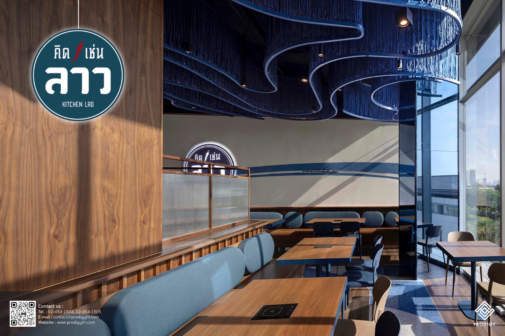 “คิดเช่นลาว” ร้านอาหารอีสานรสแซ่บที่ถูกใจหลายๆ คน กับสาขาใหม่ที่ เทอมินอล 21 พระราม 3 สาขานี้เปิดร้านมาในบรรยากาศโทนสีน้ำเงินตัดกับเฟอร์นิเจอร์ไม้ และผนังสีขาวสบายตา ที่เป็นซิกเนเจอร์ของร้าน โดยคิดเช่นลาวในสาขานี้ ทางร้านยังเลือกใช้หินเทียมเทอร์ราซโซสีน้ำเงิน ลาย Marioni blue (PD-T076) และสีเทาอ่อน ลาย Galaxy grey (PD-T077) ของโพรดิจี้ ดีไซน์ เข้ามาเพิ่มลวดลายบนพื้นให้มิกซ์แอนด์แมทช์กับโทนสีน้ำเงินของร้านได้อย่างลงตัว