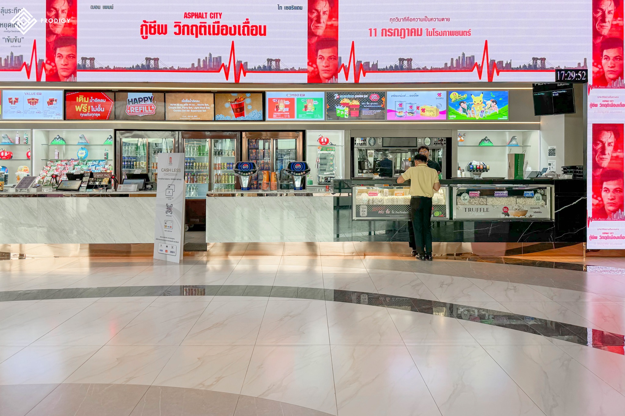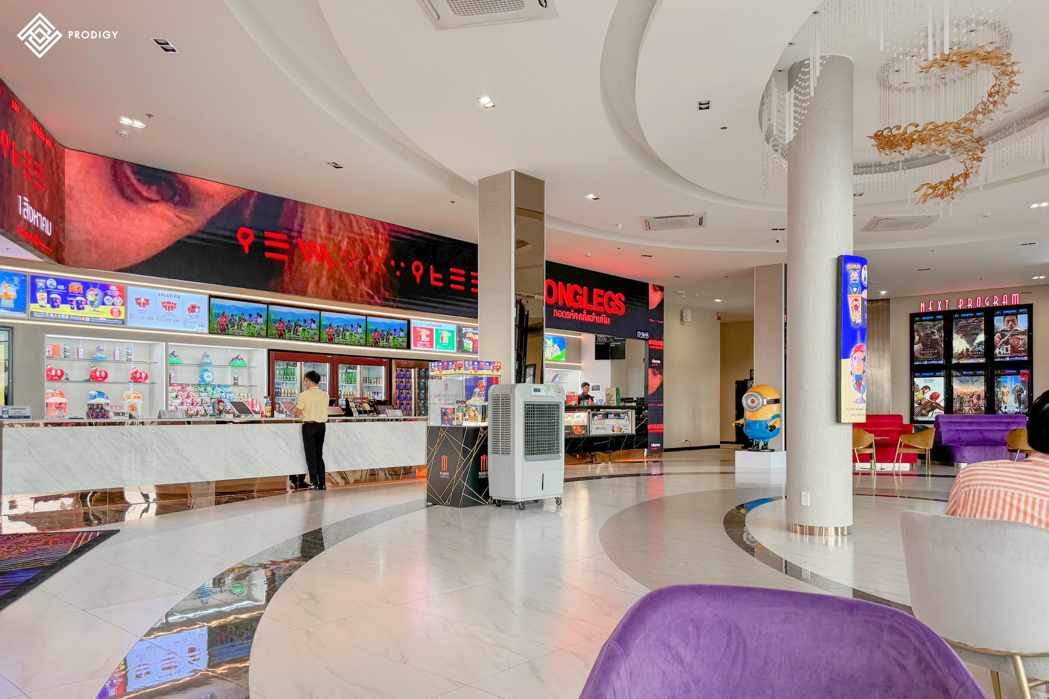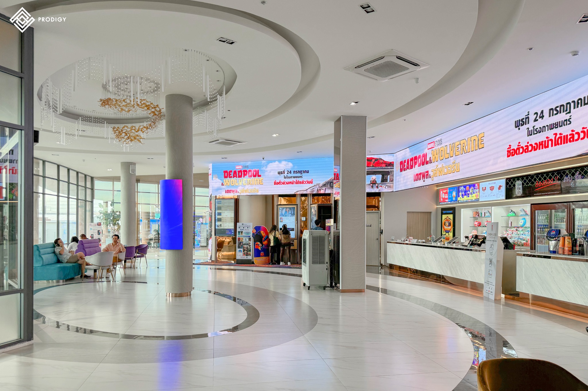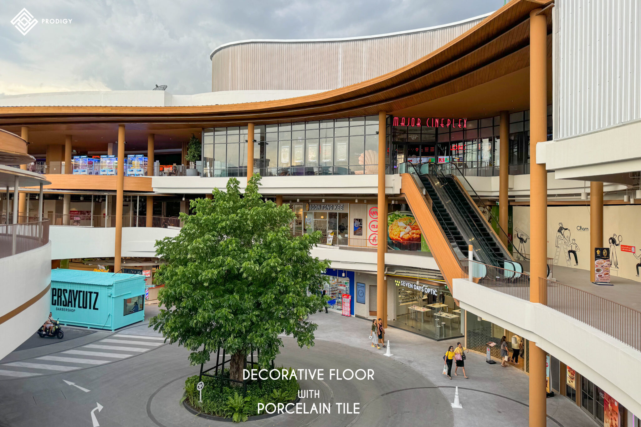 วันนี้โพรดิจี้ ดีไซน์ ขอนำผลงานการติดตั้งกระเบื้องพื้นบริเวณทางเดินเข้าโรงภาพยนต์ สถานที่ดูหนังที่ครองใจใครหลายๆคนในเครือเมเจอร์ กับ “เมเจอร์ ซีนีเพล็กซ์ สาขาชาน แอท ดิ อเวนิว แจ้งวัฒนะ” โดยทางเมเจอร์เลือกใช้กระเบื้องลาย Carrara grey และ Pietra ash ในการออกแบบให้พื้นทางเดินมีความโดดเด่นด้วยกระเบื้องสีขาวลายหินอ่อน ตัดกับกระเบื้องผิวหน้าเงาสีเทา ที่มีความเหมาะสมกับการตกกระทบของแสงไฟได้อย่างลงตัว