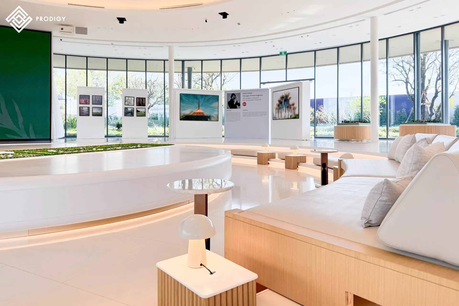 หินเทียมเทอร์ราซโซของโพรดิจี้ถูกนำมาใช้เป็นส่วนหนึ่งของผลงานนี้ด้วยคุณสมบัติด้านความแข็งแรง ทนทาน และการใช้งานหลากหลายที่มาพร้อมคุณสมบัติของพื้นหินสีขาวของ Snow white (PD-T004) ของเข้ากันได้ดีกับการออกแบบในโทนเรียบหรูมีระดับ และเข้ากับบรรยากาศการตกแต่งภายในได้อย่างสมบูรณ์และลงตัวมากที่สุด