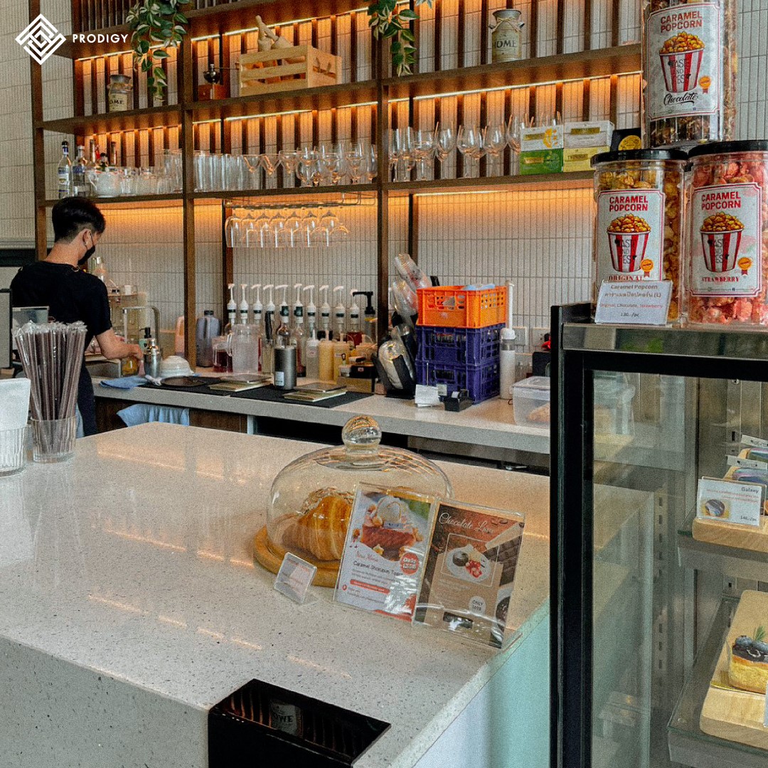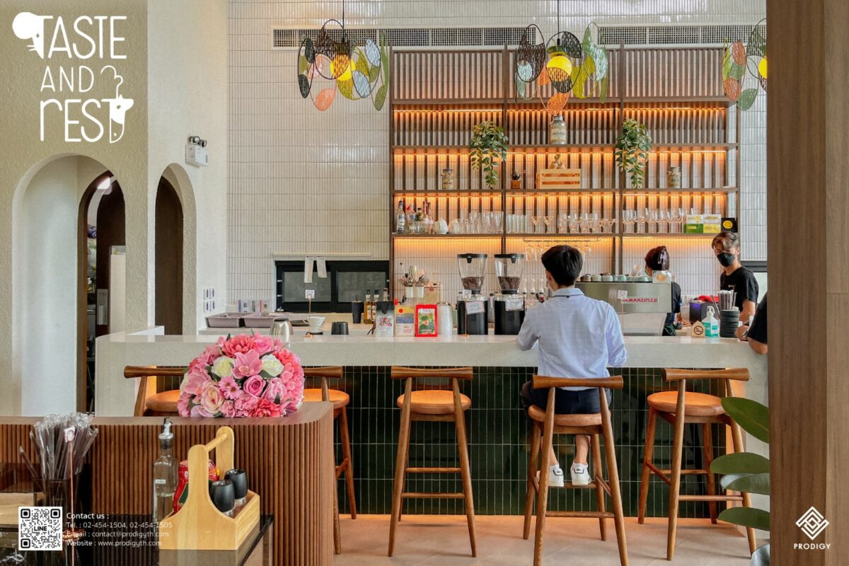 “Taste&Rest Cafe” คาเฟ่กึ่งร้านอาหารเปิดใหม่สไตล์ homemade ที่จังหวัดนครปฐม ภายในร้านตกแต่งสไตล์โฮมมี่ เน้นใช้สีน้ำตาล ขาว เขียว ช่วยสร้างบรรยากาศที่แสนอบอุ่น เหมาะกับเป็นสถานที่พักผ่อนและรับประทานอาหารที่ผ่อนคลาย ที่สามารถมาได้กับเพื่อน ครอบครัว คนรัก ถือเป็นการพักผ่อนตามสโลแกนของร้านที่ว่า “Good taste Good rest” โดยทางร้านเลือกใช้หินเทียมเทอร์ราซโซ Quartz blanc (PD-Q001) ของโพรดิจี้ ดีไซน์ ใช้ในส่วนของท็อปเคาท์เตอร์ ด้วยคุณสมบัติของวัสดุตกแต่งและวัสดุปิดผิวชนิดขึ้นรูปยกแผ่น ทำให้ประหยัดเวลาในการติดตั้ง ความสวยงามของงานตกแต่งที่ไร้รอยต่อ สัมผัสแล้วไม่สะดุดมือ