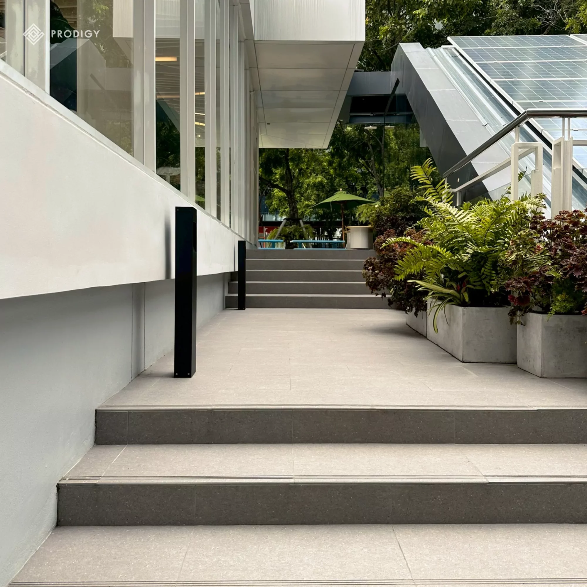 ลานกิจกรรมและพื้นที่พักผ่อนกลางแจ้งแห่งนี้ ถ่ายทอดแนวคิด Urban Oasis ผ่านกระเบื้องพอร์ซเลนรุ่น LIMESTONE ที่มาพร้อมผิวสัมผัสแบบ Matt และ Anti-slip ให้ความปลอดภัยทุกก้าวเดิน แม้ในพื้นที่เปียกหรือลาดเอียง — ฟังก์ชันที่ซ่อนอยู่ภายใต้ดีไซน์ที่เรียบหรู โทนสี Light – Medium – Dark Grey ช่วยเสริมมิติให้กับพื้นผิวอย่างกลมกลืนกับภูมิทัศน์โดยรอบ พร้อมรองรับการใช้งานจริงในทุกวัน ไม่ว่าจะเป็นพื้นที่สำหรับจัดกิจกรรม นั่งพัก หรือเดินผ่าน ก็ยังคงให้ความรู้สึกสงบ เรียบง่าย และมั่นคง